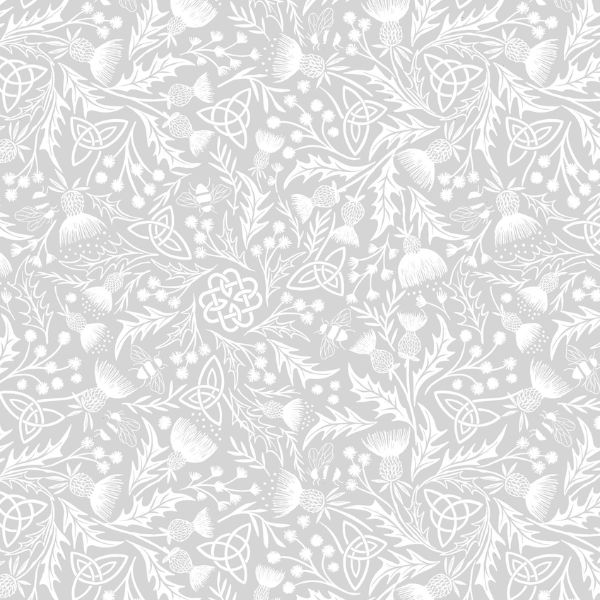 TT25C Grey on Grey Celtic Knot and Thistle, Tiny Tonals by Lewis & Irene is a design of Celtic knots and flowering thistles in grey on a grey background.