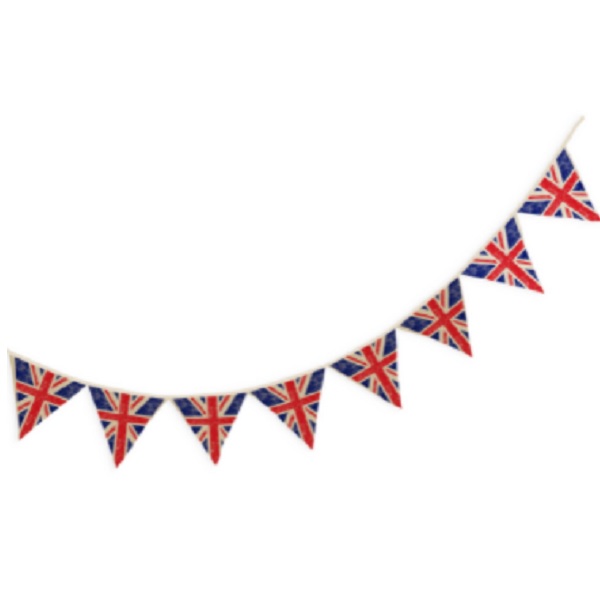 Union Jack Bunting Panel is perfect for Coronation Day celebrations, Jubilee parties and much more. This is a fantastic rustic linen look bunting. Create your own bunting with this British themed cotton rich linen look fabric.