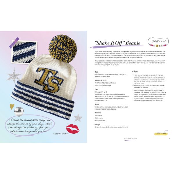 Calling all Swifties®! Unofficial Taylor Swift Crochet by Lee Sartori offers an amazing range of projects spanning fashion, home décor, amigurumi, and accessories – and all of Taylor’s eras. Inspired by her most-beloved songs, each piece captures Taylor’s signature aesthetic. This captivating collection is curated by designer Lee Sartori. With projects suited to all skill levels – from beginner to more experiences crocheter – you can create stunning pieces that are Taylor-made.