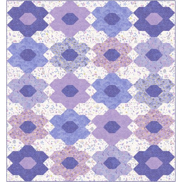 Violet Quilt Kit, Delphinium by Janet Clare includes all fabrics for the quilt top and binding, plus the pattern.