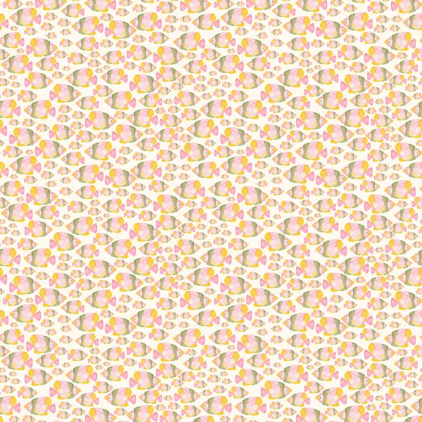 WB054.Coral Shoal of Fishes, Under the Sea by Lewis & Irene is a pink yellow and green coloured fish design on a white background.