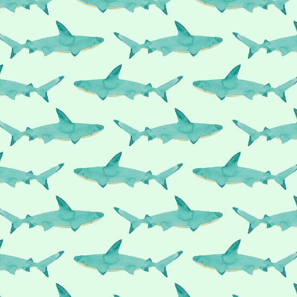 WB059.Aqua Sharks, Under the Sea by Lewis & Irene features a teal shark design on an aqua blue background.