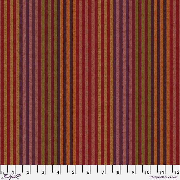 WSGP001.Earth Caterpillar Stripe Earth, Woven Stripes by Kaffe Fassett is comprised of a series of coloured stripes in earthy reds and oranges.