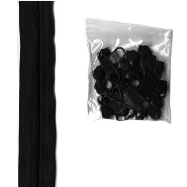 ZIPYD-105 Black 4 Yard Zipper contains 4 yards of zipper chain and 16 colour-coordinated extra-large pulls.